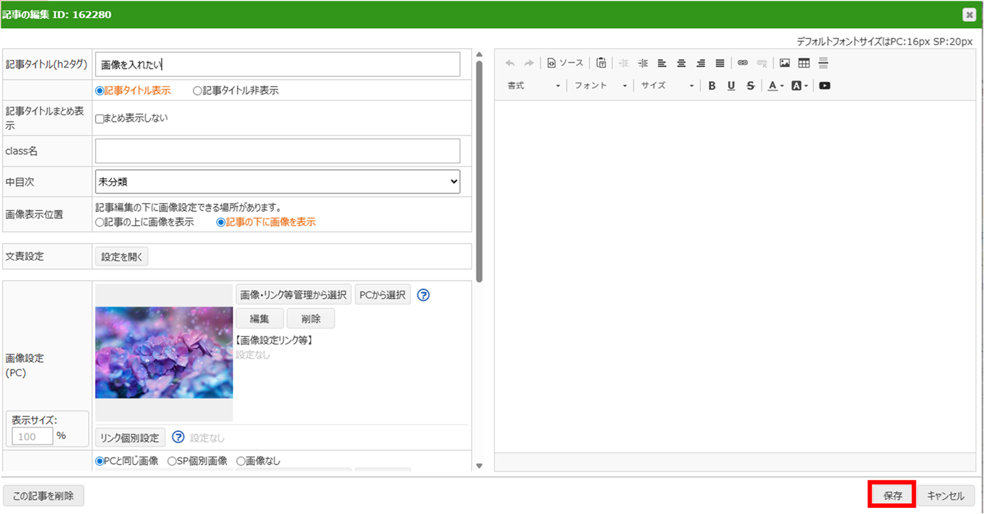 - 作成したページに記事を追加したい。(「標準」ページ)